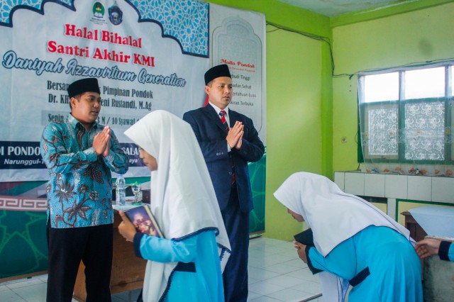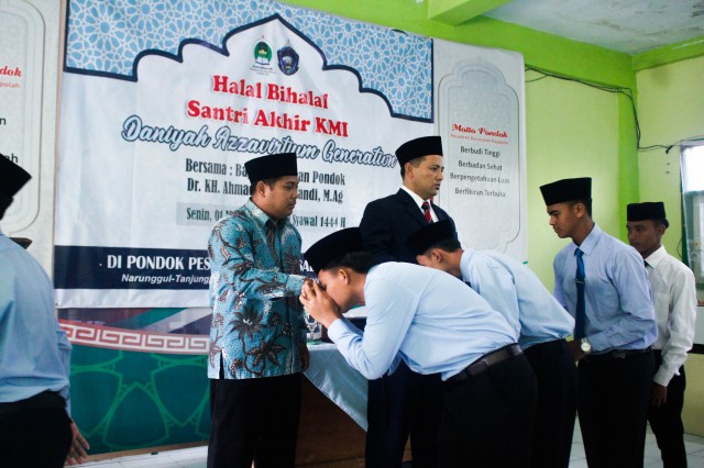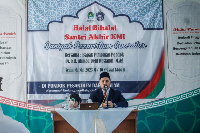 Alhamdulillah pada Senin (01/05/23) dapat dilaksanakannya Halal Bihalal Santri Akhir KMI Angkatan ke 12 Daniyah Azzavirtium Generation Di Pondok Pesantren Darussalam Rajapolah Tasikmalaya Bersama Bapak Pimpinan Pondok Dr. KH. Ahmad Deni Rustandi, M.Ag.Acara ini diawali oleh sambutan serta do'a dari Bapak Pimpinan Pondok dan diakhiri oleh mushafahah atau saling berjabat tangan/bersalaman.