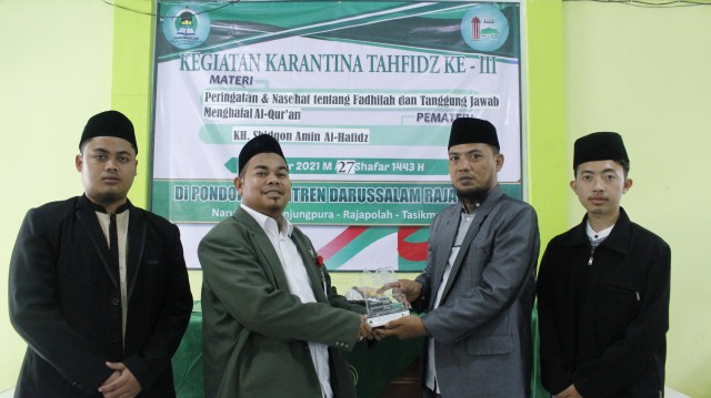 Pembukaan Karantina Tahfidz Angkatan Ke-3 di Pondok Pesantren Darussalam Rajapolah Tasikmalaya, Kegiatan ini akan dilaksanakan selama 12 hari kedepan, Kurang lebih 150 Peserta mengikuti kegiatan ini santri santriat kelas 1 KMI - 6 KMI. Kegiatan ini dibuka langsung oleh Bapak Pimpinan Pondok Pesantren Darussalam Rajapolah Tasikmalaya KH. Ahmad Deni Rustandi M.Ag.