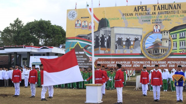 Multimedia Darussalam Tasik -- Alhamdulillah pada Kamis,17 Agustus 2023 terlaksananya Upacara Bendera Hari Ulang Tahun Indonesia ke – 78 atau biasa disebut Hari Kemerdekaan telah dilaksanakan di Pondok Pesantren Darussalam Rajapolah Tasikmalaya yang bertempat di Lapangan Pondok Putra, dimana santri/santriat yang mengikutinya adalah santri/santriat dari kelas 1 sampai kelas 6 KMI beserta Ustadz - Ustadzah dan Para Guru-Guru. Sebagai Pimpinan Pondok Pesantren KH Ahmad Deni Rustandi M,Ag secara langsung menjadi Inspektur Upacara Bendera.